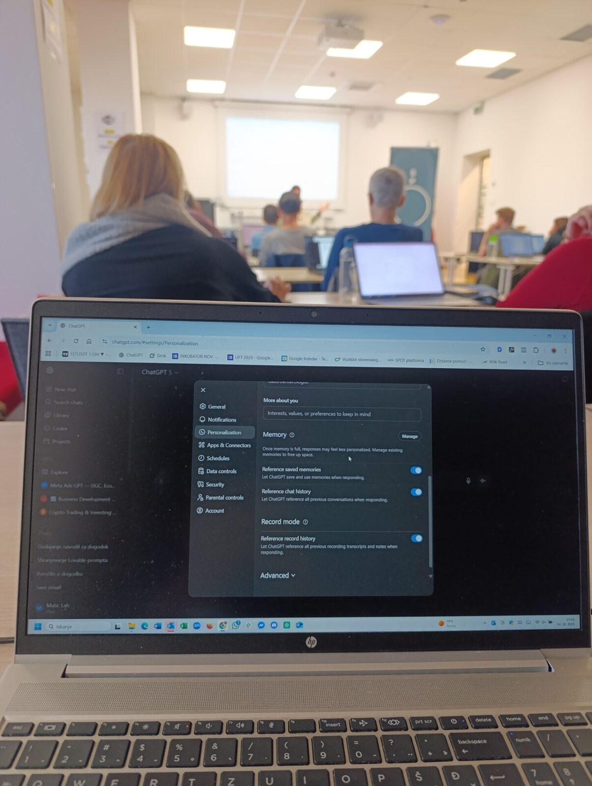 Na delavnici Postani mojster prompt inženiringa –smo skupaj pogledali, kako iz ChatGPT-ja potegniti več kot samo generičen odgovor. Veliko praktičnih primerov, kup vprašanj iz publike in tisti “aha!” in »wow« trenutki, ko vidiš česa vse je AI sposoben, ti si ga pa uporabljal, da ti spiše recept za pito in preveri mail 💡 😮.