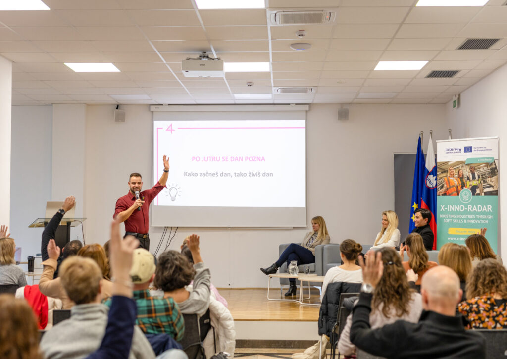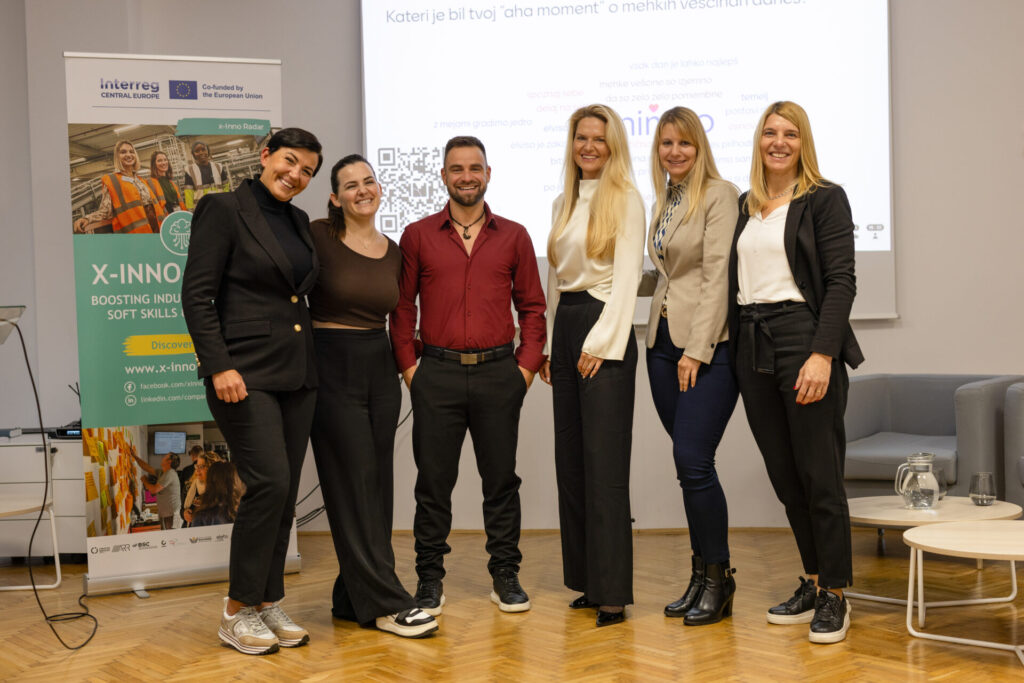 Dogodek je bil izveden pod okriljem evropskega projekta x-Inno Radar, kjer s partnerji iz 8 različnih držav iščemo načine, kako vrniti človeškost v postindustrijske regije. Tehnologija napreduje, AI je vedno bolj glasna … ljudje pa smo vse tišji. In ravno zato govorimo o mehkih veščinah — komunikaciji, empatiji, mejah, timskem delu, radovednosti, avtentičnosti. Vse tisto, kar algoritmi (vsaj za zdaj 😉) ne obvladajo.